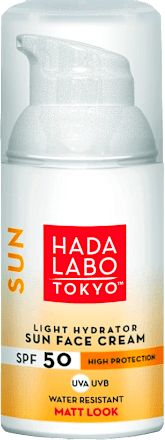 Hada Labo Sun nježna krema za lice lagane teksture formulirana je pažljivo u japanskim laboratorijima te pruža visoku SPF zaštitu kako bi garantirala sigurnu i učinkovitu zaštitu protiv štetnih sunčevih zraka. Krema koristi efikasne filtere visoke kvalitete kako bi zaštitila kožu od štetnih UVA i UVB zraka. Hada Labo Sun nježna krema sa zaštitnim faktorom 50 sadrži super hijaluronsku kiselinu, regenerirajući pantenol i anti-age sastojke koji obnavljaju i regeneriraju kožu: elastin i kolagen. Hada Labo Sun kreme su napravljene s nježnom i inovativnom Dry- Touch formulom koja osigurava brzo upijanje i ne ostavlja masne tragove na koži, a mogu se nanositi i na mokru ili vlažnu kožu.
